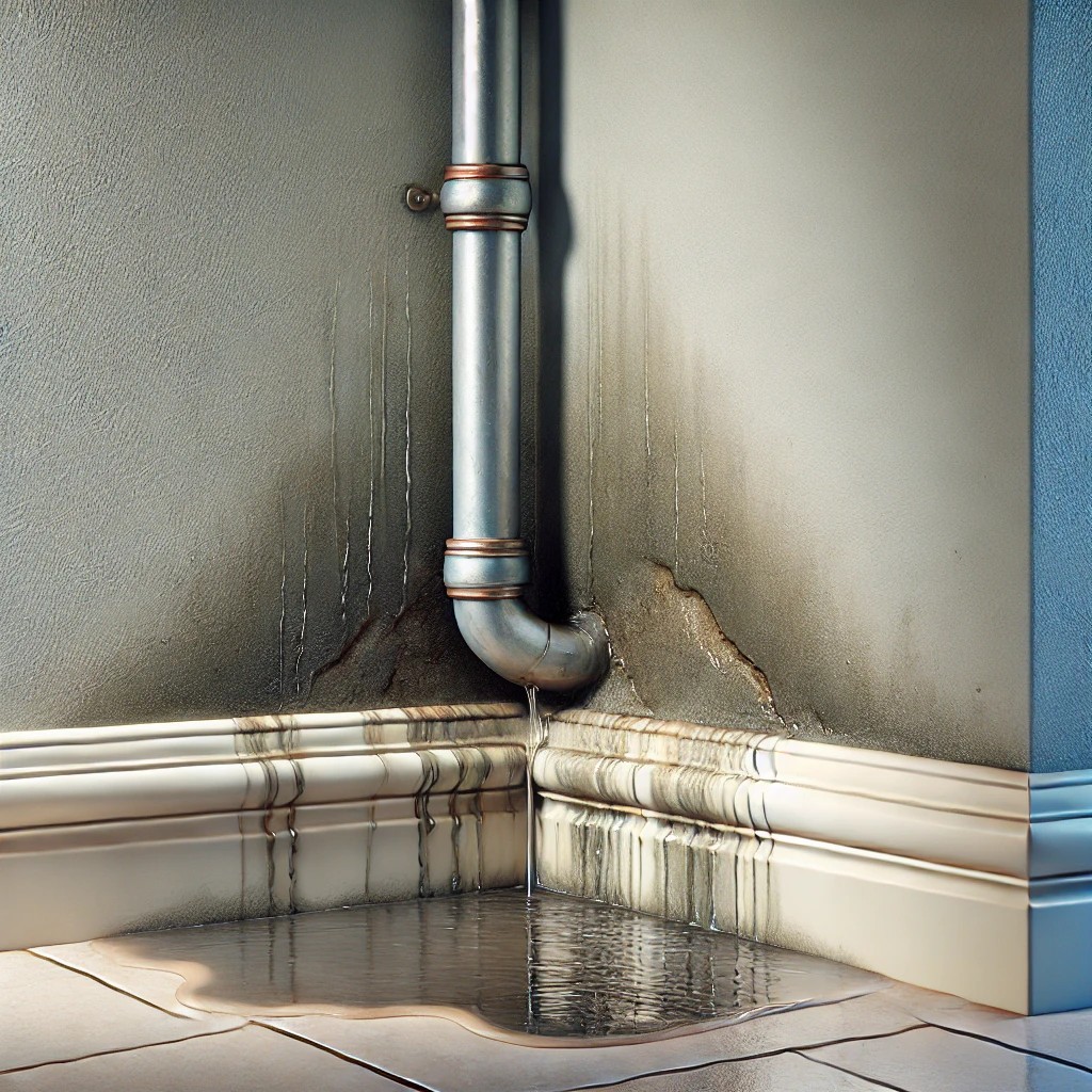 如果漏水發生在牆角或地面,且呈現持續性漏水,那麼問題很可能出在家裡的給水管線。這種情況通常由於管道老化或位移導致水滲透出來,建議盡早處理,尤其對於地板或裝潢為木材的人家來說,延遲處理會造成更大損失。