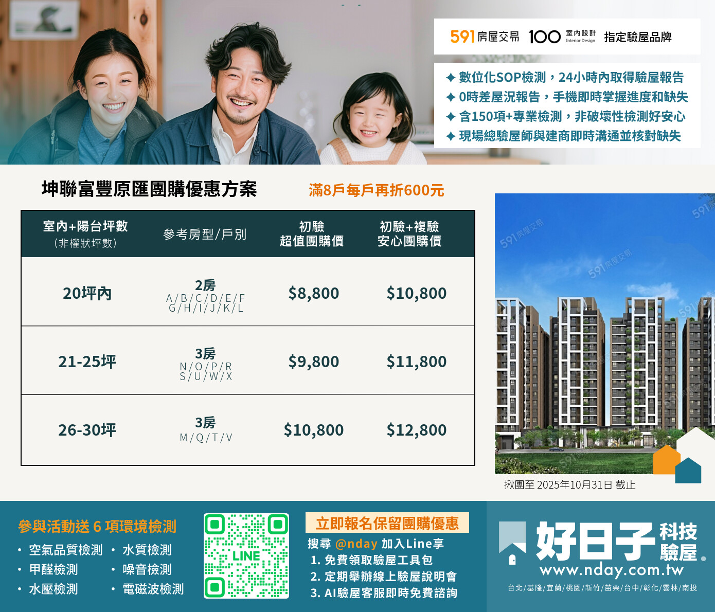 專屬【台中市豐原區】坤聯富豐原匯團購驗屋,坤聯富建設,坤聯興營造-團購驗屋挑戰市場最低價-限時倒數揪團中