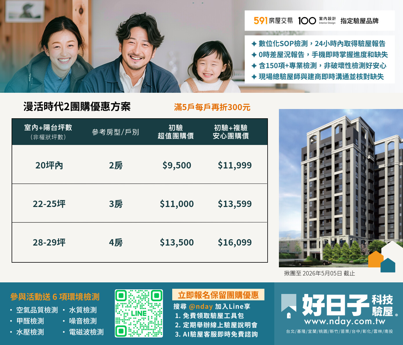 | 室內+陽台坪數 | 房型 | 初驗價格 | 初驗+複驗價格 |
