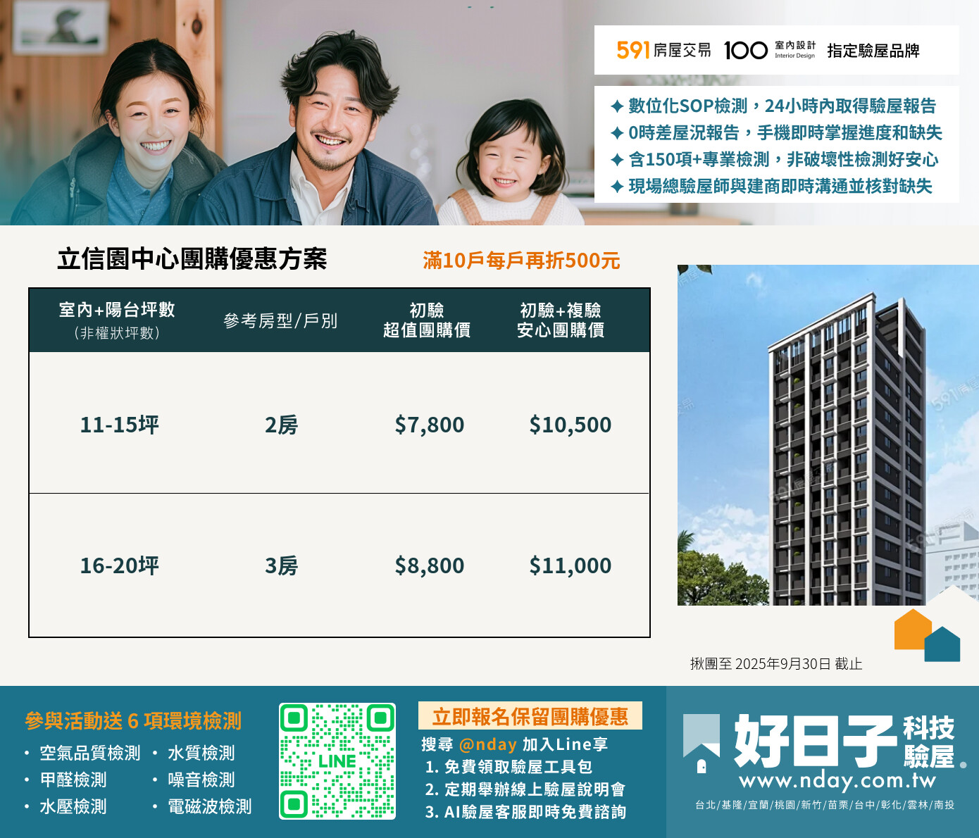 專屬【新北市三峽區】立信園中心團購驗屋,立信建設,立信工營造-團購驗屋挑戰市場最低價-限時倒數揪團中