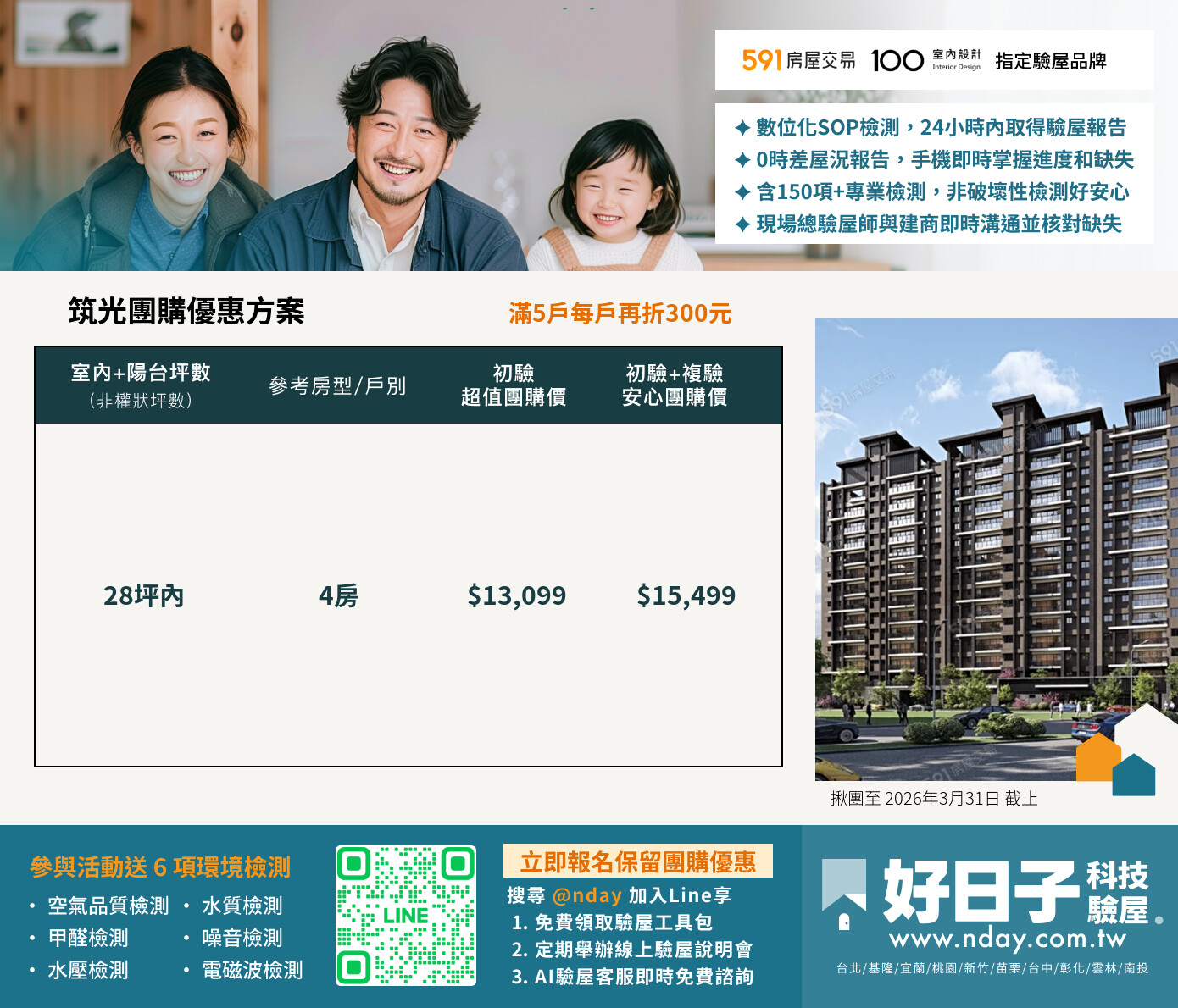 | 室內+陽台坪數 | 房型 | 初驗價格 | 初驗+複驗價格 |