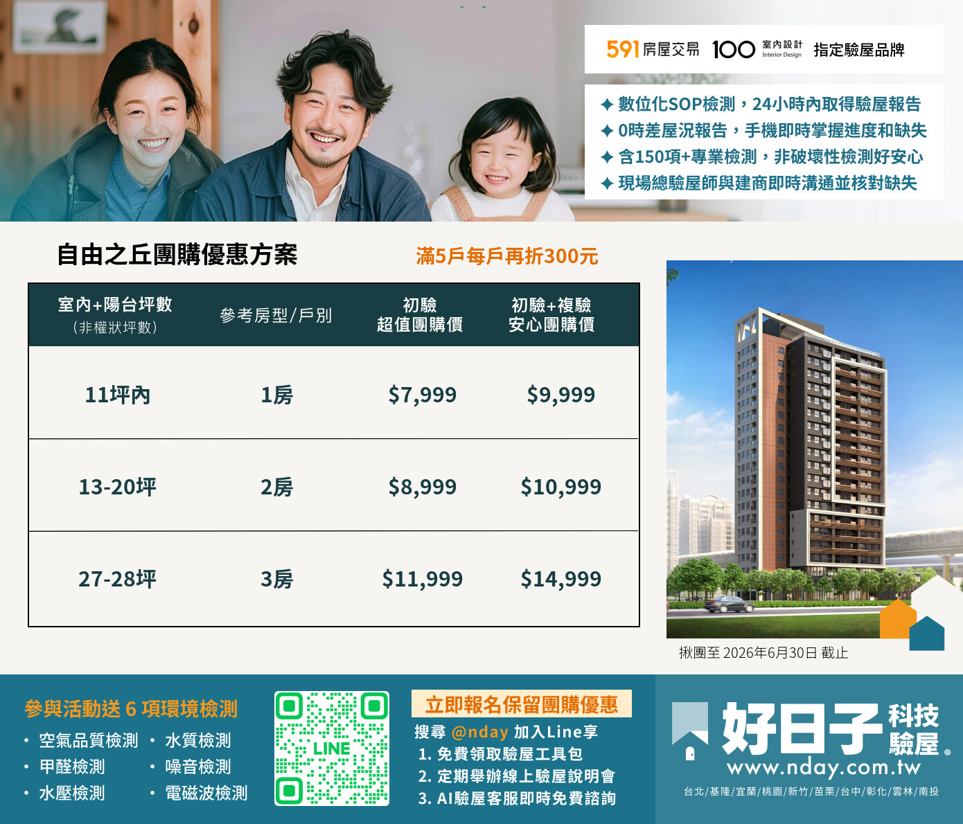 | 室內+陽台坪數 | 房型 | 初驗價格 | 初驗+複驗價格 |